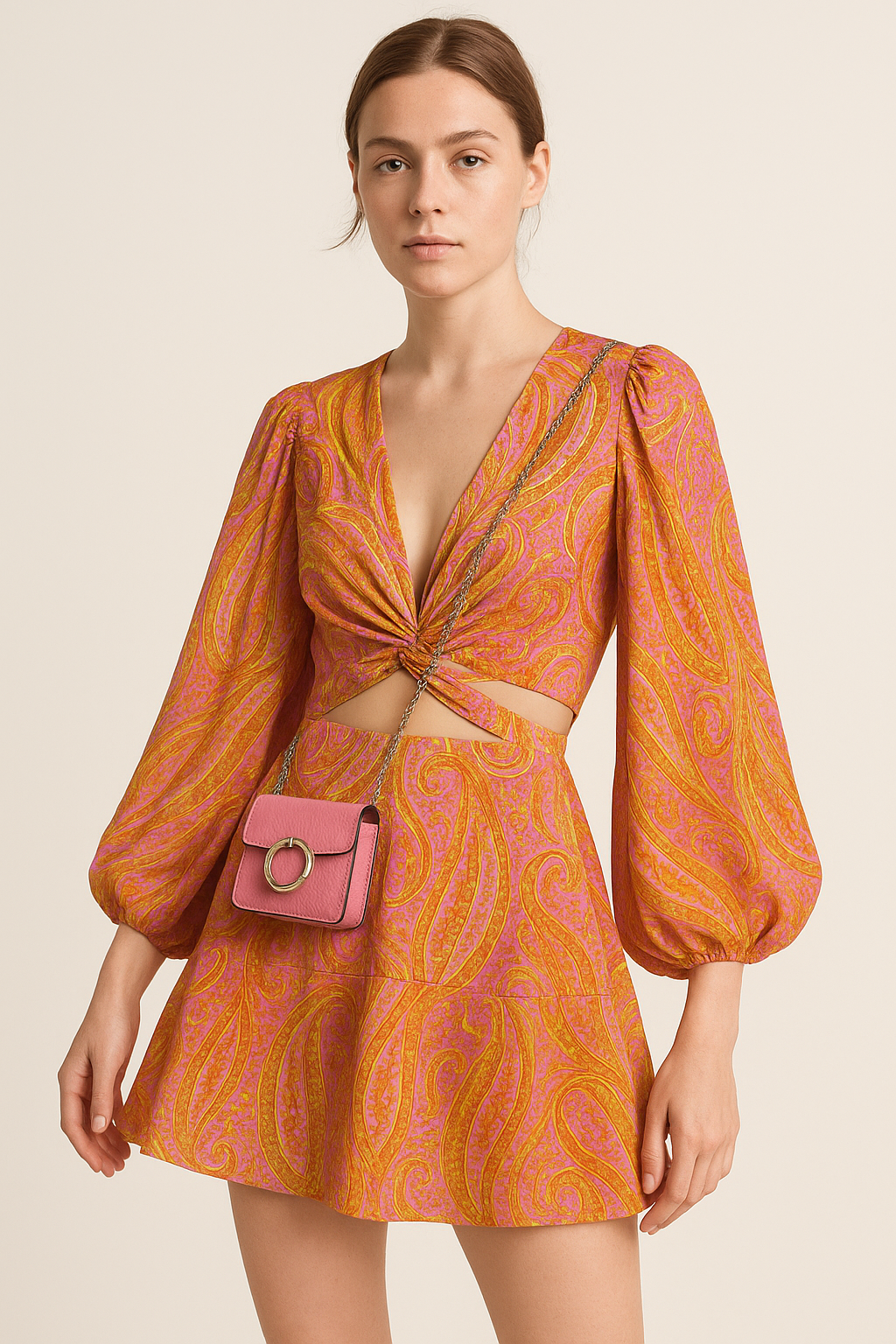 De Retro damesjurk met knoopdetail en elegante hals – Freja combineert klassieke stijl met eigentijdse verfijning. Deze jurk is ideaal voor tuinfeesten, informele avondjes uit of wanneer je gewoon een statement wilt maken. De opvallende print, vrouwelijke V-hals en subtiele uitsnijdingen zorgen samen voor een krachtige, elegante uitstraling.