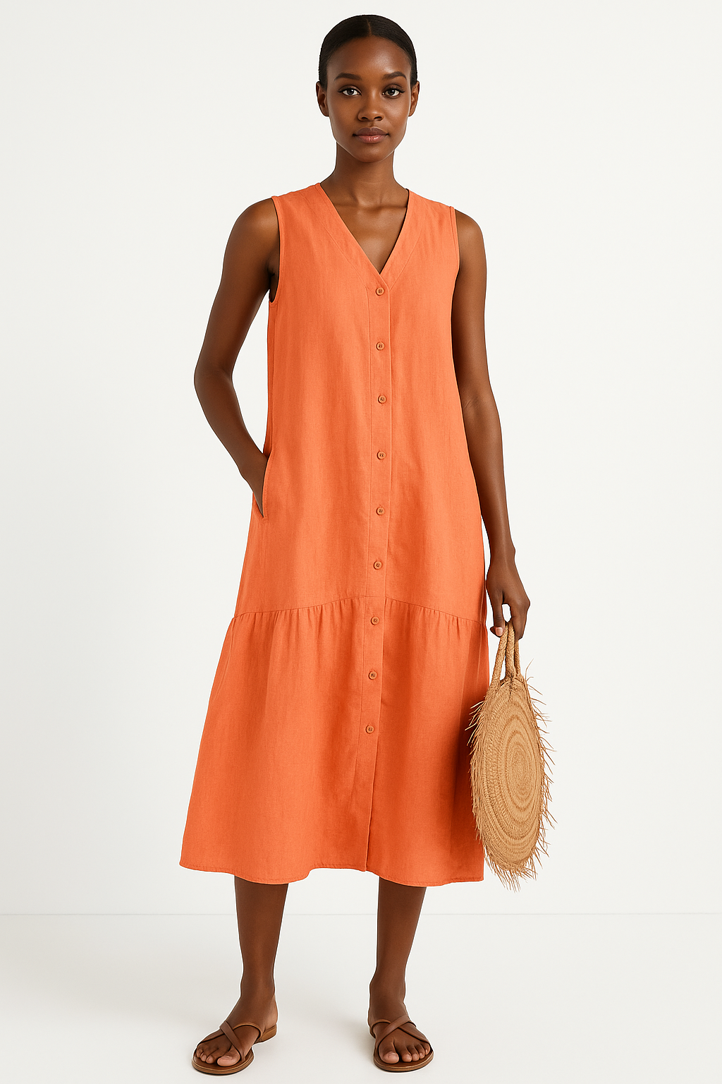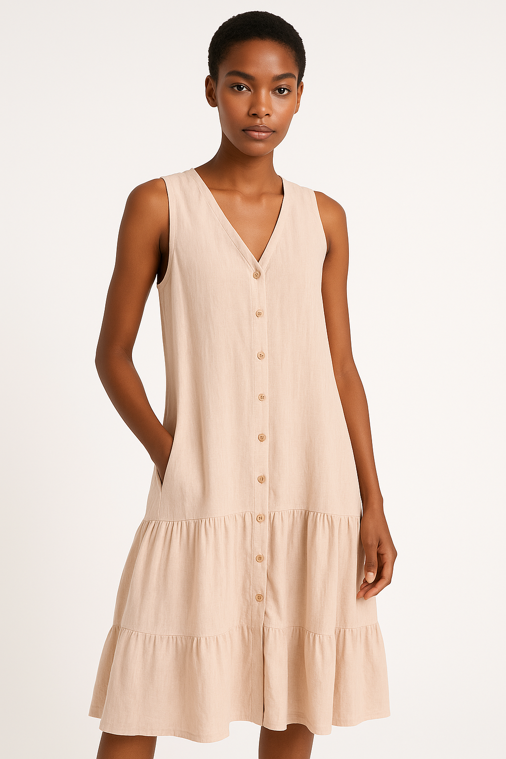 Blijf koel en stijlvol tijdens elk zomermoment met de zomerjurk met V-hals en ademende stof – Lyra. Deze jurk combineert een relaxte pasvorm met subtiele, vrouwelijke details en is ontworpen voor zowel comfort als uitstraling. Perfect voor zonnige dagen, diners in de buitenlucht of een avondwandeling langs het strand.