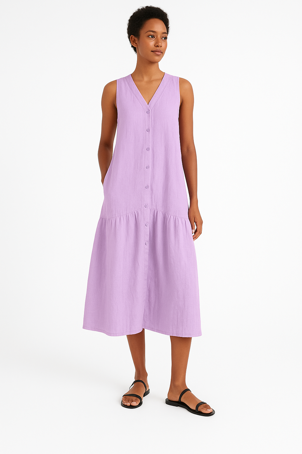 Zomerse damesjurk van ademende stof met vloeiende snit – Elina
